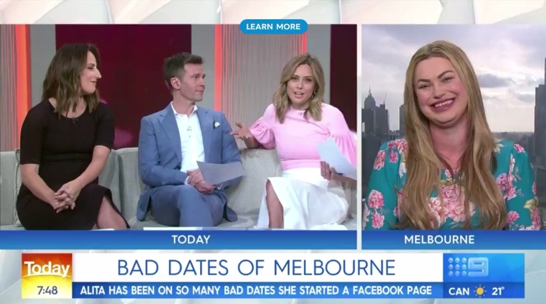 What a great show! I was on air with the vibrant team at Today talking bad dates. You can see it here.